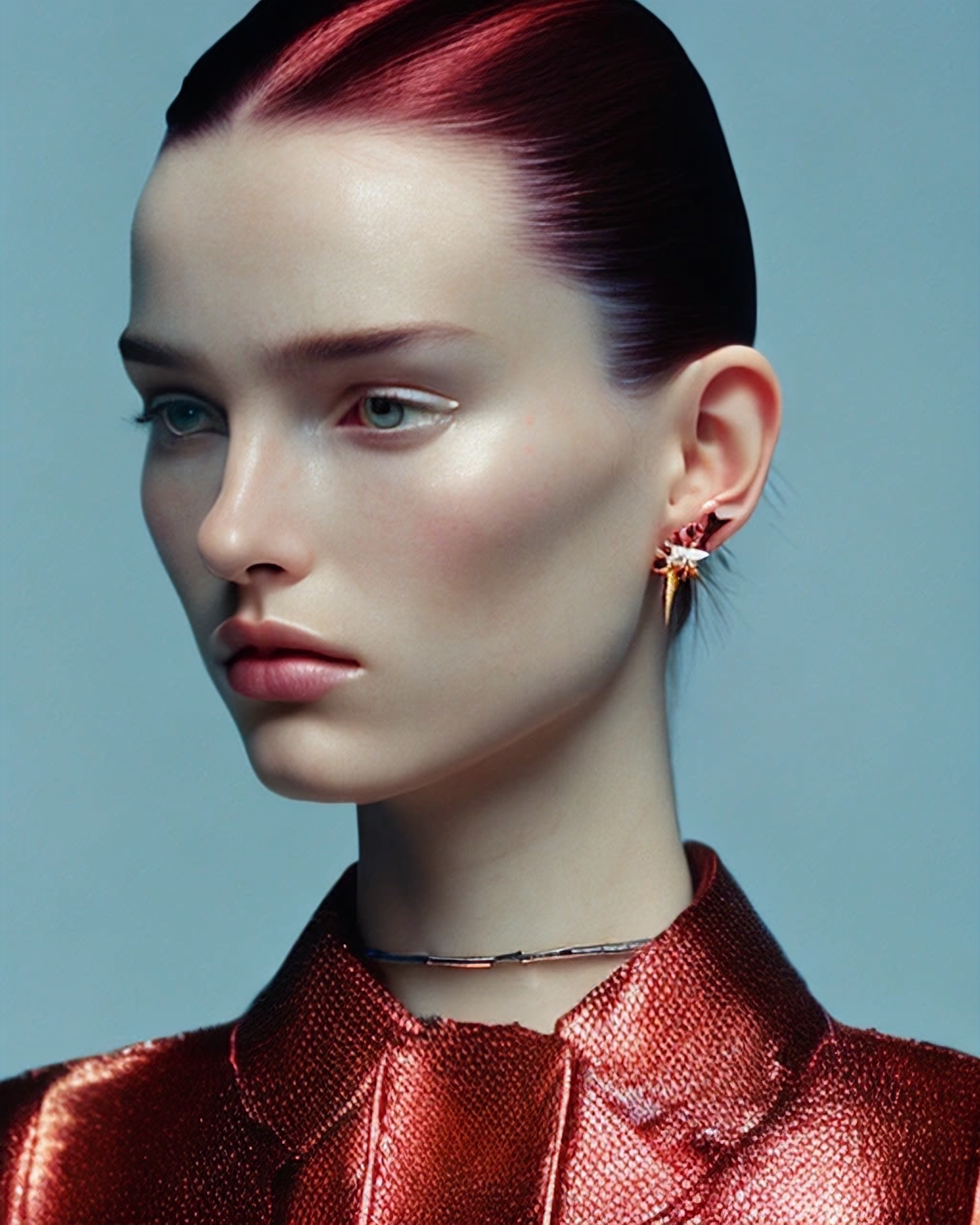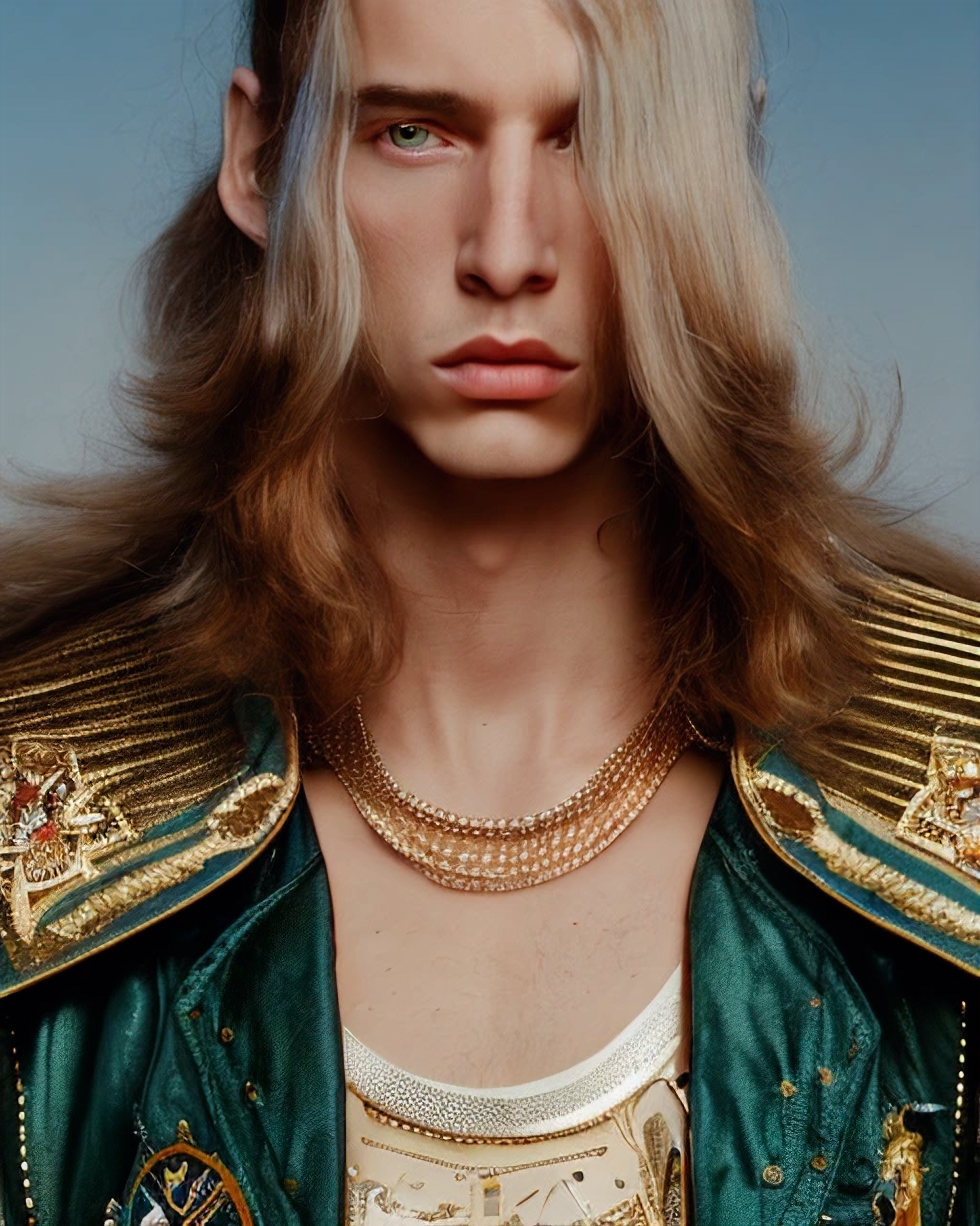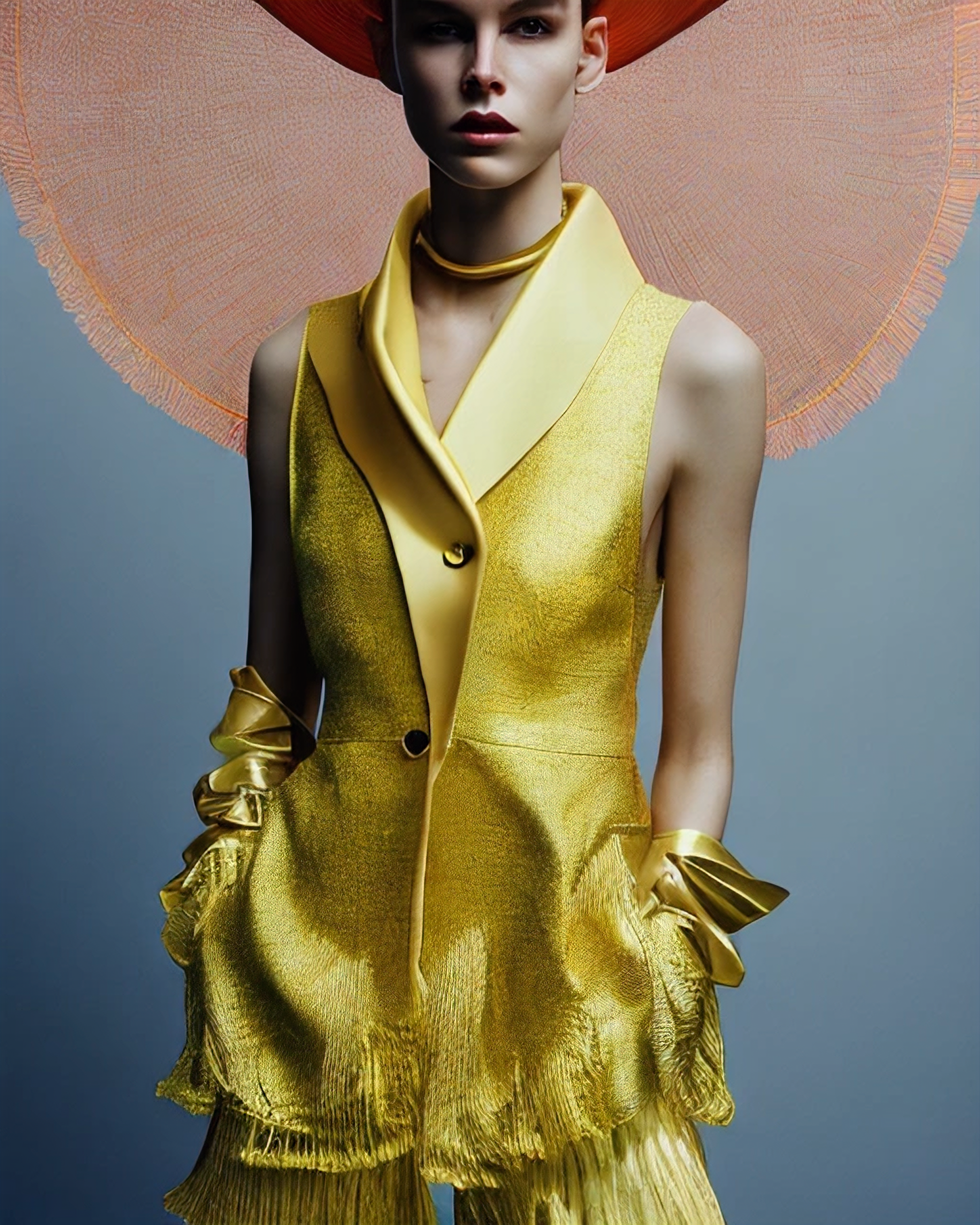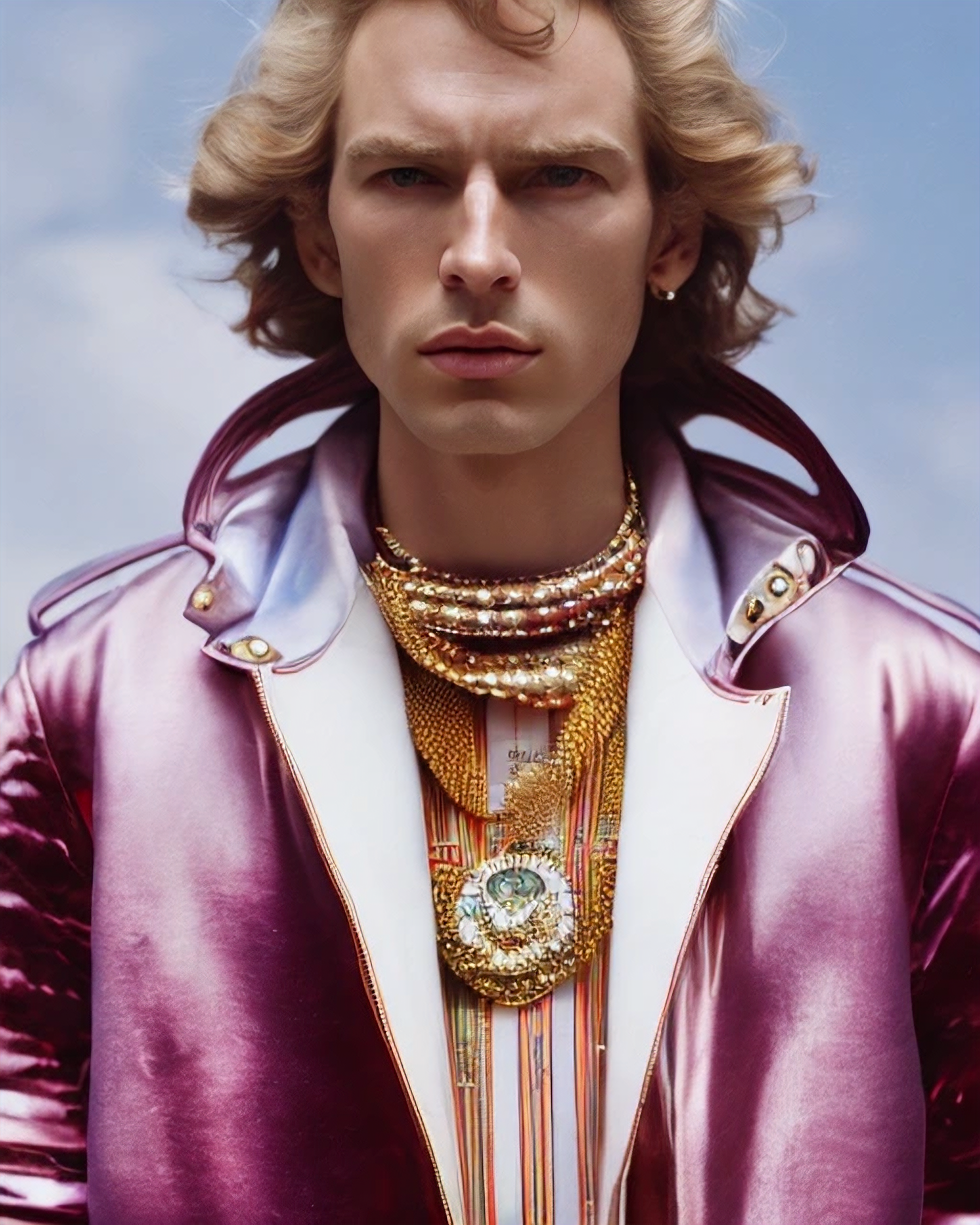 Fashion portrait exploration about Computer generated images done in collaboration with Stable Diffusion Open Journey Model.